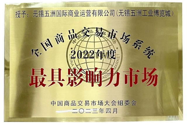 無錫五洲國際工業(yè)博覽城受邀參加,憑借在專業(yè)五金交易市場領(lǐng)域作出的優(yōu)秀成果和在推動行業(yè)發(fā)展上的突出貢獻(xiàn),經(jīng)中國商品交易市場大會組委會審定,被授予全國商品交易市場“最具影響力市場”榮譽(yù)。