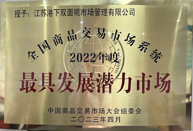 4月20—22日,第23屆中國商品交易市場大會在福建省廈門市成功召開。會上,江蘇省雙面呢服裝交易市場被授予“全國商品交易市場最具發(fā)展?jié)摿κ袌觥睒s譽稱號。