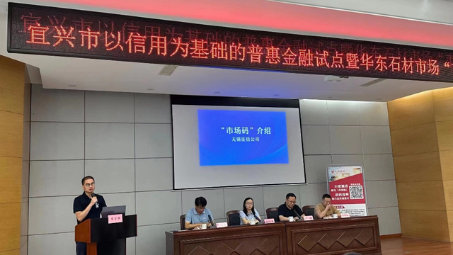 為進(jìn)一步推進(jìn)省創(chuàng)新信用管理與服務(wù)(普惠金融)試點(diǎn)工作,6月30日上午,無(wú)錫市發(fā)展改革委(信用辦)、宜興市發(fā)展改革委(信用辦)在華東石材市場(chǎng)聯(lián)合舉辦“市場(chǎng)碼”推廣會(huì),無(wú)錫市發(fā)展改革委副主任楊曉妮、無(wú)錫市發(fā)展改革委信用處處長(zhǎng)陳葉青、宜興市發(fā)展改革委副主任沈鵬、萬(wàn)石鎮(zhèn)副鎮(zhèn)長(zhǎng)涂文杰、華東石材城董事長(zhǎng)馮鐵良、無(wú)錫企業(yè)征信公司、中國(guó)郵政儲(chǔ)蓄銀行、寧波銀行等4家銀行及40家代表商戶參加活動(dòng)。