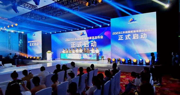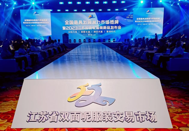 新媒體傳媒社8月18日無錫訊(周銘揚 楊壯波 / 文并攝)火紅八月,商聚太湖。今天上午,全國商品市場最具發(fā)展?jié)摿κ袌鍪谂启?023江蘇雙面呢服裝新品發(fā)布會在錫山區(qū)東港鎮(zhèn)紅豆杉莊會議中心隆重舉行。參加會議的有來自全國各地的33家主流批發(fā)市場的管理人員和采購批發(fā)商代表。