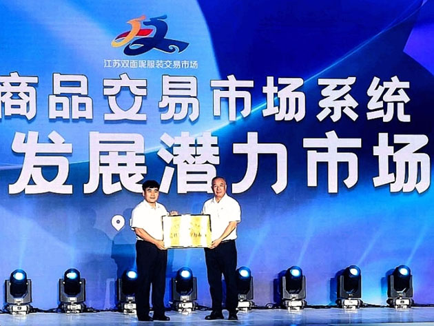 在與會代表和相關(guān)領(lǐng)導(dǎo)的共同見證下,市場學(xué)會常務(wù)副秘書長金陸成代表中國市場學(xué)會批發(fā)委授予雙面呢市場“全國最具發(fā)展?jié)摿κ袌觥狈Q號。
