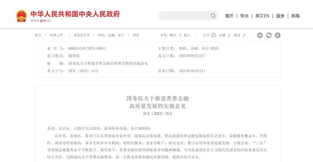 10月11日,國務(wù)院印發(fā)《關(guān)于推進(jìn)普惠金融高質(zhì)量發(fā)展的實施意見》(以下簡稱《實施意見》),明確了未來五年推進(jìn)普惠金融高質(zhì)量發(fā)展的指導(dǎo)思想、基本原則和主要目標(biāo),提出了一系列政策舉措。