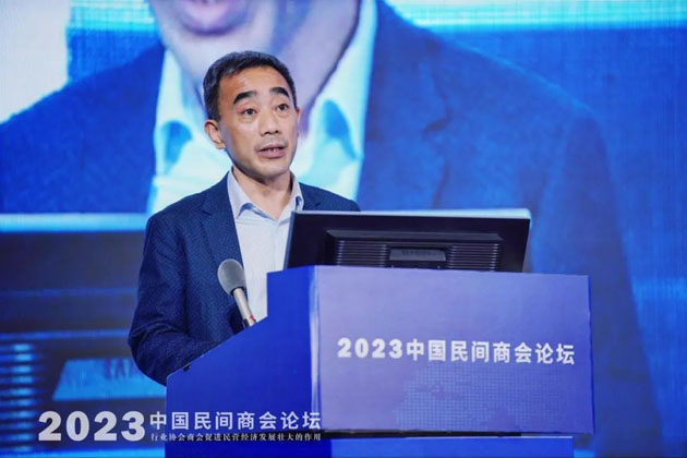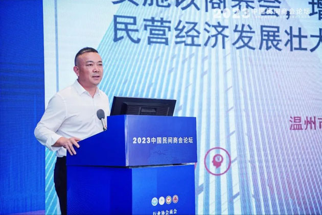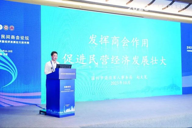 趙文冕作題為“發(fā)揮商會(huì)作用,促進(jìn)民營(yíng)經(jīng)濟(jì)發(fā)展壯大”的報(bào)告。他總結(jié)了行業(yè)協(xié)會(huì)商會(huì)促進(jìn)民營(yíng)經(jīng)濟(jì)發(fā)展壯大的“溫州實(shí)踐”:狠抓陣地建設(shè),為產(chǎn)業(yè)生態(tài)鏈優(yōu)化夯實(shí)基礎(chǔ);加強(qiáng)隊(duì)伍建設(shè),為民營(yíng)企業(yè)家健康成長(zhǎng)創(chuàng)造環(huán)境;實(shí)行政企聯(lián)動(dòng),為親清政商關(guān)系構(gòu)建協(xié)同發(fā)力;創(chuàng)新政策支持,為營(yíng)商環(huán)境持續(xù)優(yōu)化提供支撐;開展合規(guī)建設(shè),為民營(yíng)企業(yè)行穩(wěn)致遠(yuǎn)保駕護(hù)航;推進(jìn)清廉建設(shè),為民營(yíng)企業(yè)穩(wěn)健發(fā)展掃除障礙;助力產(chǎn)業(yè)培育,為行業(yè)轉(zhuǎn)型升級(jí)拓寬賽道;實(shí)施共富引領(lǐng),為企業(yè)回報(bào)社會(huì)激發(fā)動(dòng)能。他指出,商會(huì)促進(jìn)民營(yíng)經(jīng)濟(jì)發(fā)展壯大要聚焦四個(gè)方面持續(xù)發(fā)力:聚焦民營(yíng)經(jīng)濟(jì)高質(zhì)量發(fā)展,為商會(huì)促進(jìn)民營(yíng)經(jīng)濟(jì)發(fā)展壯大創(chuàng)造共建共享的內(nèi)部條件;聚焦民營(yíng)經(jīng)濟(jì)人士高素質(zhì)成長(zhǎng),為商會(huì)促進(jìn)民營(yíng)經(jīng)濟(jì)發(fā)展壯大打好堅(jiān)實(shí)可靠的人才基礎(chǔ);聚焦民營(yíng)經(jīng)濟(jì)發(fā)展環(huán)境優(yōu)化,為商會(huì)促進(jìn)民營(yíng)經(jīng)濟(jì)發(fā)展壯大營(yíng)造寬松和諧的外部環(huán)境;聚焦黨建引領(lǐng)商會(huì)作用發(fā)揮,為商會(huì)促進(jìn)民營(yíng)經(jīng)濟(jì)發(fā)展壯大提供堅(jiān)強(qiáng)有力的組織保障。