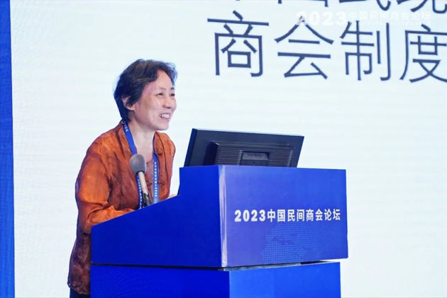 潘麗珍作題為“中國(guó)式現(xiàn)代化建設(shè)中廣東商會(huì)發(fā)展的幾點(diǎn)思考”的報(bào)告。她認(rèn)為中國(guó)式現(xiàn)代化建設(shè)中現(xiàn)代商會(huì)應(yīng)具有講政治、人民至上、文化傳承和健全運(yùn)營(yíng)保障等內(nèi)在本質(zhì)。隨后,她梳理了廣東省探索商會(huì)發(fā)展、拓展商會(huì)服務(wù)職能的歷程。針對(duì)當(dāng)前現(xiàn)代商會(huì)制度建設(shè)存在的五個(gè)主要問題,她提出了相應(yīng)的對(duì)策。在中國(guó)式現(xiàn)代化建設(shè)進(jìn)程中實(shí)現(xiàn)現(xiàn)代商會(huì)制度建設(shè)新突破,應(yīng)進(jìn)一步夯實(shí)現(xiàn)代商會(huì)制度法制基礎(chǔ),實(shí)現(xiàn)立法新突破;完善商會(huì)管理體系,實(shí)現(xiàn)商會(huì)運(yùn)作管理新突破;完善現(xiàn)代商會(huì)發(fā)展的實(shí)踐理論研究體系,實(shí)現(xiàn)商會(huì)理論研究新突破;提高商會(huì)從業(yè)者“職業(yè)化”水平,實(shí)現(xiàn)人才培養(yǎng)供給新突破;適應(yīng)新時(shí)代工商聯(lián)工作任務(wù)調(diào)整,實(shí)現(xiàn)聯(lián)系、指導(dǎo)、服務(wù)現(xiàn)代商會(huì)制度建設(shè)新突破。