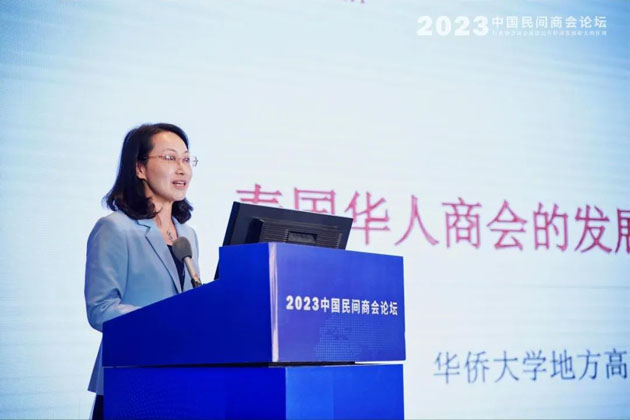 徐晞作題為“泰國(guó)華人商會(huì)的發(fā)展趨勢(shì)和網(wǎng)絡(luò)治理”的報(bào)告。她發(fā)現(xiàn),泰國(guó)華人商會(huì)在時(shí)代洪流中展現(xiàn)出“擬村落化”現(xiàn)象,來自不同省份的商會(huì)不斷涌現(xiàn),專屬于青年華商的商會(huì)不斷成立,逐漸展現(xiàn)出混合化、國(guó)際化、本地化的特征。她認(rèn)為,泰國(guó)華人商會(huì)與中泰兩國(guó)政府及其相關(guān)部門、社會(huì)組織、社會(huì)大眾之間形成良性互動(dòng),在深化經(jīng)貿(mào)合作、增進(jìn)政治互信、培養(yǎng)后備人才、促進(jìn)共同富裕這幾個(gè)方面形成網(wǎng)絡(luò)治理效果。然而,泰國(guó)華人商會(huì)在外部治理中面臨了華人商會(huì)力量分散、政治經(jīng)濟(jì)政策制約、華商網(wǎng)絡(luò)擴(kuò)張能力受限等困難,應(yīng)從加強(qiáng)民間組織交流、整合華商力量、完善關(guān)系網(wǎng)絡(luò)等方面優(yōu)化外部治理網(wǎng)絡(luò)。