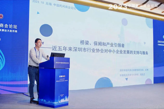 段博作題為“S市協(xié)會(huì)對(duì)中小企業(yè)的支持服務(wù)研究”的報(bào)告。他回顧了深圳市行業(yè)協(xié)會(huì)發(fā)展歷程,指出深圳市是中國(guó)改革開放先行先試示范區(qū),在行業(yè)協(xié)會(huì)方面,先后率先推出全面民營(yíng)化、突破“一業(yè)一會(huì)”限制等措施,推進(jìn)市場(chǎng)化改革,營(yíng)造市場(chǎng)競(jìng)爭(zhēng)氛圍。深圳的行業(yè)協(xié)會(huì)是行業(yè)發(fā)展不可缺少的政商橋梁、企業(yè)保姆和產(chǎn)業(yè)引領(lǐng)者,一手溝通政府,成為政府政策落地的重要幫手;一手服務(wù)企業(yè),成為實(shí)質(zhì)上的中小企業(yè)扶持援助組織。深圳的行業(yè)協(xié)會(huì)不斷提升職業(yè)化、市場(chǎng)化水平,逐漸成為深圳社會(huì)組織中最具活力和創(chuàng)造力的部分,為服務(wù)中小企業(yè)走發(fā)展轉(zhuǎn)型、創(chuàng)新競(jìng)爭(zhēng)之路,堅(jiān)定不移聯(lián)合政府官員、商界精英、學(xué)界學(xué)者、協(xié)會(huì)專家等力量,聚焦專精特新化、國(guó)際化、智能化,恢復(fù)各類展會(huì),順產(chǎn)業(yè)鏈上下游拓展服務(wù),引領(lǐng)產(chǎn)業(yè)提質(zhì)升級(jí)。