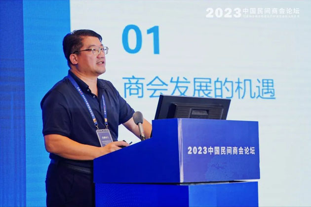 盧愛任作題為“新時(shí)代商會(huì)發(fā)展的機(jī)遇與挑戰(zhàn)”的報(bào)告。他觀察到,隨著商會(huì)的總體發(fā)展數(shù)量不斷增多、商會(huì)作用不斷增強(qiáng)、各級(jí)黨委政府越來越重視商會(huì)發(fā)展、商會(huì)理論研究越來越充分、商會(huì)的立法基礎(chǔ)越來越具備,商會(huì)的發(fā)展有著巨大的可能性。然而,目前商會(huì)發(fā)展面臨著會(huì)費(fèi)少、專職人員匱乏、內(nèi)部治理混亂、職責(zé)不清、會(huì)員信任度不高等挑戰(zhàn)。在此背景下,他對(duì)商會(huì)未來的發(fā)展提出了幾點(diǎn)思考,認(rèn)為商會(huì)可以從增強(qiáng)黨建引領(lǐng)、增強(qiáng)可信度、增強(qiáng)自身建設(shè)確立可信度、確定內(nèi)生責(zé)任形成獲得感、加大維權(quán)力度具備安全感、擴(kuò)大交流宣傳樹立榮譽(yù)感這些方面賦能商會(huì)未來發(fā)展。