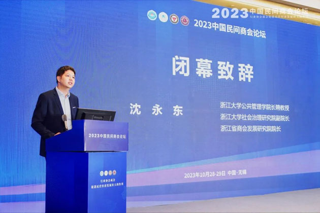 沈永東對(duì)本屆論壇進(jìn)行了總結(jié)并致閉幕辭。他指出:本屆中國(guó)民間商會(huì)論壇主題聚焦行業(yè)協(xié)會(huì)商會(huì)促進(jìn)民營(yíng)經(jīng)濟(jì)發(fā)展壯大的作用,是貫徹落實(shí)黨中央國(guó)務(wù)院發(fā)布的《關(guān)于促進(jìn)民營(yíng)經(jīng)濟(jì)發(fā)展壯大的意見》具體舉措,體現(xiàn)了中央最新指示要求,反映了廣大民營(yíng)企業(yè)和商會(huì)組織的迫切需要,可謂恰逢其時(shí)。來自全國(guó)各地的商會(huì)實(shí)務(wù)者、學(xué)界研究者、政屆實(shí)踐者等共襄盛會(huì),使得行業(yè)協(xié)會(huì)商會(huì)實(shí)務(wù)實(shí)踐和理論研究的最新進(jìn)展在本屆論壇中得到全面展示。