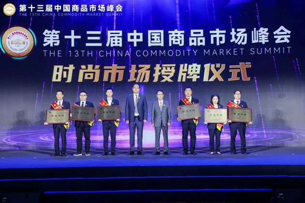 江蘇省雙面呢服裝交易市場(chǎng)被授予“時(shí)尚市場(chǎng)”榮譽(yù)稱號(hào),位列榜單第16名。市場(chǎng)董事長(zhǎng)戴裕良作為時(shí)尚市場(chǎng)代表上臺(tái)領(lǐng)獎(jiǎng),并現(xiàn)場(chǎng)宣讀《商品市場(chǎng)發(fā)展義烏宣言》。