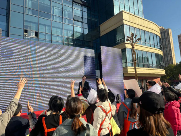 活動(dòng)啟動(dòng)儀式上,王丹愉、沈越、龔志勇、施道春、陳曦一同將手掌放置在大屏幕上,炫酷的電子光幕閃爍,第十屆美廚娘廚藝線下賽正式啟動(dòng)。