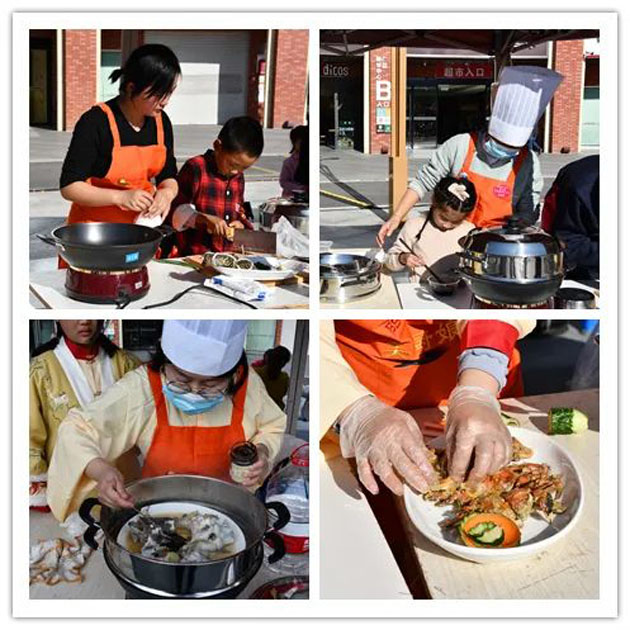 決賽現(xiàn)場(chǎng),10組美廚娘以鱸魚(yú)為主食材,再次默契配合,紛紛拿出了看家本領(lǐng),十八般廚藝各顯神通,切菜、翻炒、調(diào)味……手中的鍋鏟上下翻飛,“食神”范兒十足,小朋友們?cè)谝慌耘浜霞议L(zhǎng)的同時(shí)也不忘加油打氣……
