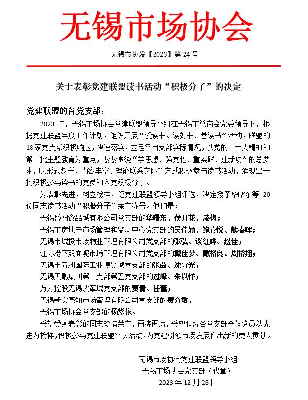 關于表彰黨建聯(lián)盟讀書活動“積極分子”的決定