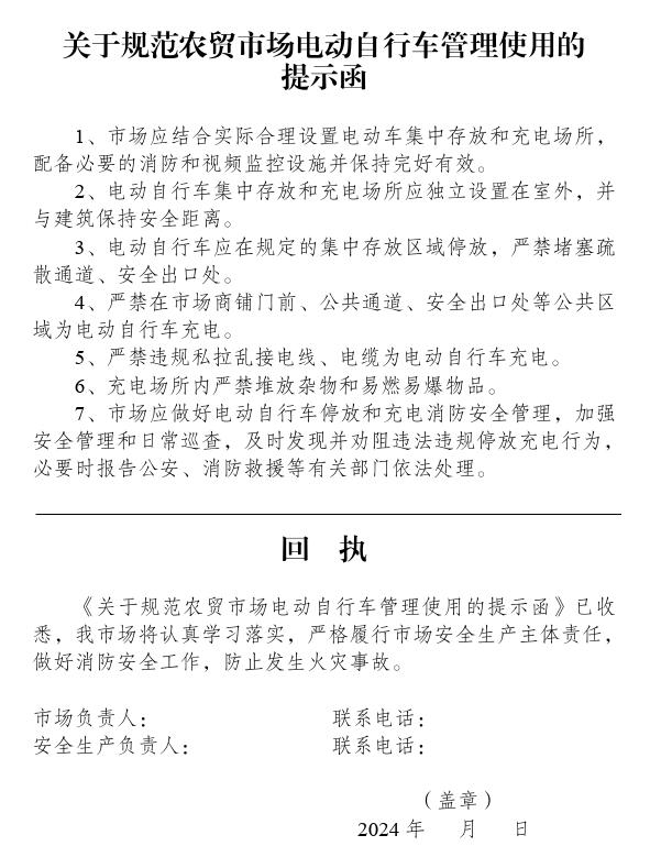 20240308關(guān)于規(guī)范農(nóng)貿(mào)市場(chǎng)電動(dòng)自行車管理使用的提示函