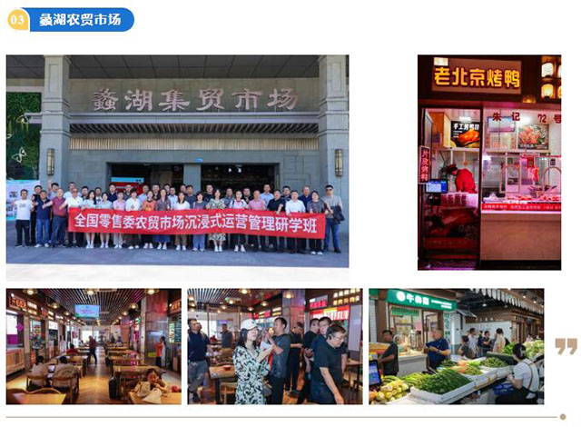 外行看熱鬧,內(nèi)行看門道。為了避免走馬觀花的看熱鬧,本次研學(xué)活動采取考察與座談交流相結(jié)合的方式,考察了12家各具特色,規(guī)模不同、地理位置不同的農(nóng)貿(mào)市場,組織了4次與行業(yè)精英面對面的深度交流座談。采他山之石以攻玉,納百家之長以厚己。學(xué)員帶著問題去看,以解決問題為目的去交流,市場管理者分享成長經(jīng)歷、成功經(jīng)驗、面臨的困境,對行業(yè)未來展望,讓同行少走彎路,快速成長,共同推動農(nóng)貿(mào)市場高質(zhì)量發(fā)展。