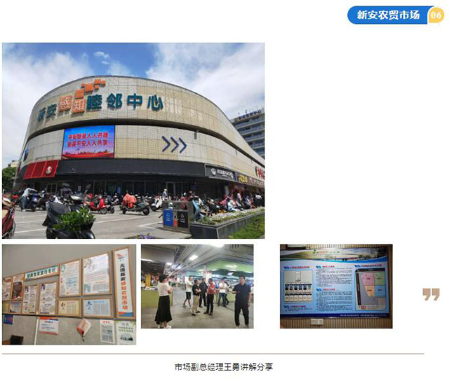 亮點:市場采取“低進嚴管”管理手段,日均客流量保持在7-8萬人次左右。發(fā)揮集團批零供應(yīng)鏈優(yōu)勢,在食品追溯、惠民平價等方面業(yè)績比較突出。市場與商戶之間活動互動密切:每日特價商品活動、重大活動的展銷會等,降低經(jīng)營戶的經(jīng)營成本,然后讓經(jīng)營戶把利潤讓給老百姓,為市場引流提供了很好的服務(wù)手段。區(qū)塊鏈技術(shù)應(yīng)用、商戶紅黑榜、電子眼安保值得借鑒學(xué)習(xí)。