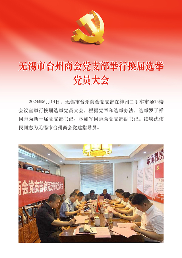 無錫市臺州商會黨支部換屆選舉黨員大會
