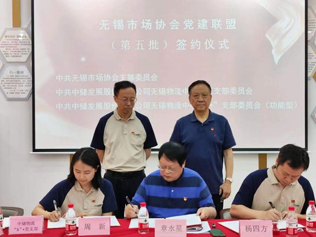 隨后,黨建聯(lián)盟第五批成員:中儲(chǔ)股份無(wú)錫物流中心第三黨支部、中儲(chǔ)股份無(wú)錫物流中心“5+”黨支部(功能型),在章永星會(huì)長(zhǎng)、周新副書記的監(jiān)簽和參會(huì)人員的共同見(jiàn)證下,與黨建聯(lián)盟發(fā)起單位無(wú)錫市場(chǎng)協(xié)會(huì)黨支部正式舉行了簽約儀式。