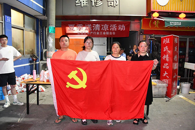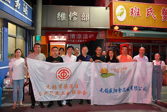 區(qū)水產(chǎn)行業(yè)工會聯(lián)合會主席丁偉峰,盛陽水產(chǎn)行業(yè)工會主席殷若慶,盛陽食品城副總經(jīng)理、職工工會主席趙涌元,區(qū)水產(chǎn)行業(yè)工會婦工委主任錢夏,經(jīng)審委委員陳奕宏、金任,水產(chǎn)工會各小組組長,盛陽黨支部副書記侯丹花,盛陽團(tuán)支部書記李飛龍,部分工會積極分子及盛陽職工志愿者參加了此次活動(dòng)。趙涌元代表因臨時(shí)公務(wù)未能出席本次活動(dòng)的盛陽董事長龔志勇同志,向在高溫天氣下仍堅(jiān)持工作的眾人表示了親切的慰問,將防暑物資送到大家手中,并特別關(guān)注高溫天氣下水產(chǎn)從業(yè)者的身體狀況,再三囑咐交代大家,一定要注意防暑降溫,也要求市場其他管理人員做好勞動(dòng)者中暑應(yīng)急預(yù)案,備足藥品;對行業(yè)工會積極開展送清涼活動(dòng),關(guān)心所服務(wù)企業(yè)的防暑降溫工作、認(rèn)真維護(hù)職工會員夏季勞動(dòng)安全,表達(dá)了真誠的感謝。