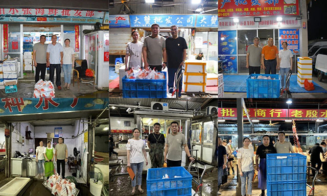 進(jìn)一步關(guān)心水產(chǎn)從業(yè)者的身心健康,傳遞工會組織及盛陽公司對市場員工、經(jīng)營戶、消費(fèi)者的關(guān)愛,營造良好的水產(chǎn)行業(yè)氛圍,有效改善水產(chǎn)會員的夏季工作生活條件,認(rèn)真做好高溫天氣下水產(chǎn)從業(yè)者勞動(dòng)保護(hù)工作,切實(shí)維護(hù)廣大會員的職業(yè)安全與健康權(quán)益,2024年8月10日凌晨2點(diǎn),梁溪區(qū)水產(chǎn)行業(yè)工會聯(lián)合會聯(lián)合無錫盛陽食品城有限公司在市場警務(wù)站旁舉行了“清涼一夏——關(guān)心關(guān)愛水產(chǎn)從業(yè)者”送清涼慰問活動(dòng),為夜間來往的進(jìn)貨商和經(jīng)營戶們準(zhǔn)備了包括鹽汽水、礦泉水、消夏飲品、夏用毛巾、肥皂等夏季防暑降溫用品共計(jì)近四百份。