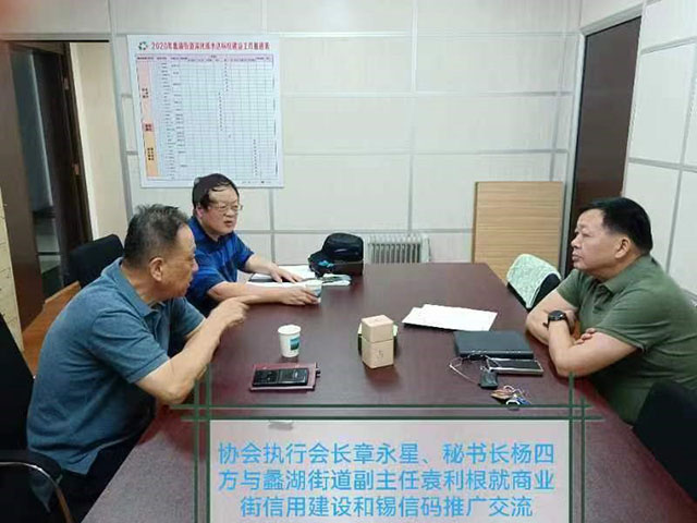 根據(jù)無錫市場協(xié)會黨支部、湖濱商業(yè)街區(qū)域黨委與濱湖區(qū)餐飲行業(yè)黨委、濱湖區(qū)外賣送餐行業(yè)黨委簽約的黨組織共建協(xié)議,為進(jìn)一步發(fā)揮高質(zhì)量黨建引領(lǐng)街區(qū)高質(zhì)量發(fā)展作用,把“紅心大市場”建進(jìn)商圈,讓商業(yè)街“紅”起來,著力探索商圈小區(qū)黨建新路徑,以打造“信用+街區(qū)”為基礎(chǔ),開展信用建設(shè)推進(jìn)活動。8月1日,無錫市場協(xié)會執(zhí)行會長章永星,協(xié)會秘書長、黨支部書記楊四方一行三人,帶著對商圈誠信環(huán)境建設(shè)的深切關(guān)懷,踏入了濱湖區(qū)蠡湖街道的會議室,與湖濱商業(yè)街區(qū)域黨委書記、街道副主任袁利根就在蠡湖街道區(qū)域共同探索商圈誠信體系構(gòu)建新路徑,特別是針對“錫信碼”的推廣與應(yīng)用進(jìn)行深入交流。