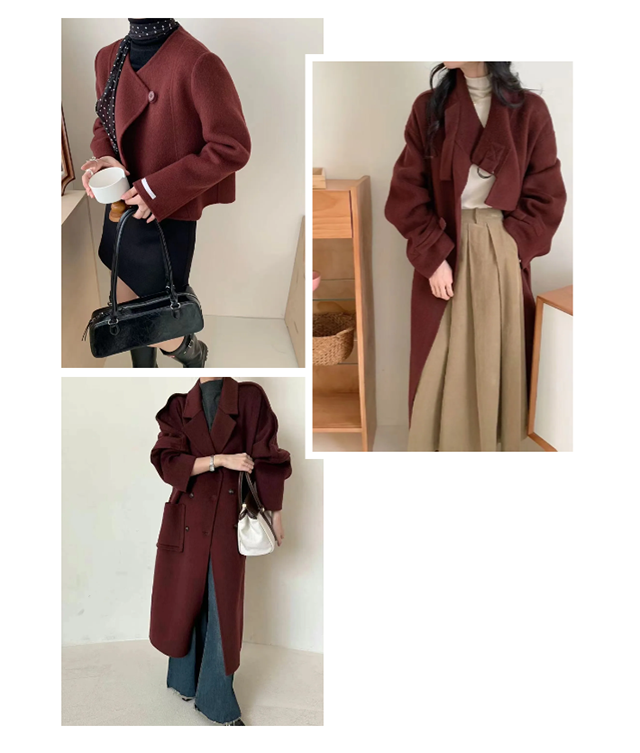 ANCORA RED安可拉紅已然成為2024秋冬大火的流行色,不同于美拉德的溫厚、格雷系的清冷,安可拉紅保留了紅色的熱情與活力的同時(shí)摒棄了高飽和度紅色所帶來(lái)的突兀,深沉濃郁,低調(diào)沉穩(wěn),是秋冬時(shí)尚搭配中的點(diǎn)睛之筆!雙面呢市場(chǎng)內(nèi)各大品牌也早已鎖定這一時(shí)尚色系,通過(guò)經(jīng)典、韓系、淑女等百變風(fēng)格的演繹,助力采批商火爆大賣(mài)!