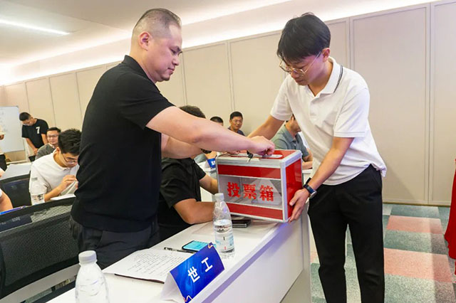 介紹了換屆選舉總監(jiān)票人、監(jiān)票人、計票人、唱票人推選產(chǎn)生情況,并提請大會表決通過。