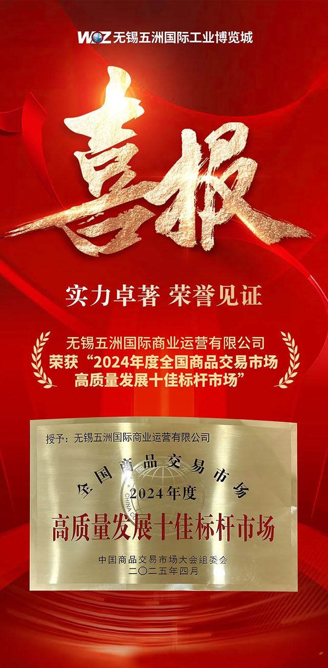 首屆中國服務(wù)消費(fèi)創(chuàng)新大會(huì)暨第二十五屆中國商品交易市場(chǎng)大會(huì)在天津舉行。會(huì)上,無錫五洲國際工業(yè)博覽城獲評(píng)“2024年度全國商品交易市場(chǎng)高質(zhì)量發(fā)展十佳標(biāo)桿市場(chǎng)”。